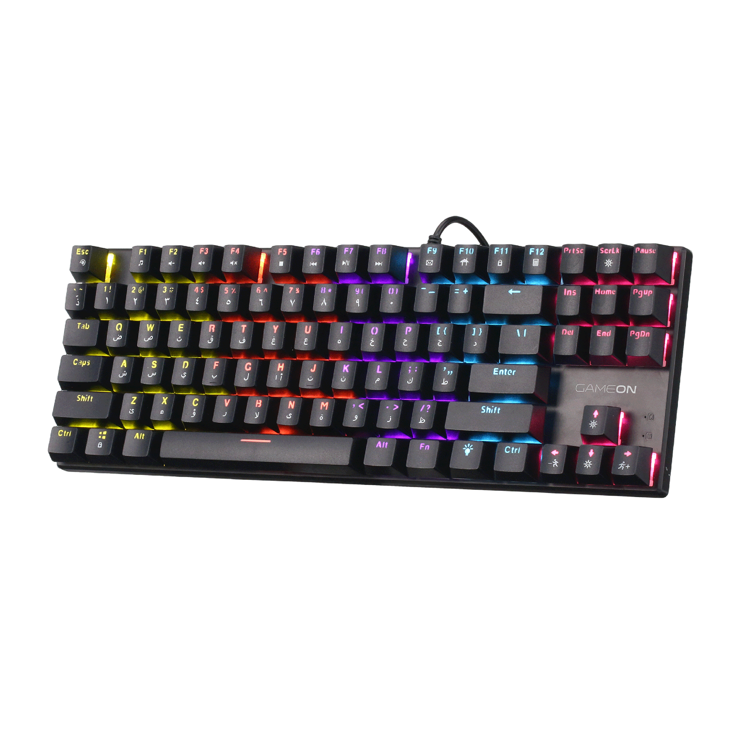 GAMEON KENORA GOMK87-RS 80% RGB mechanical gaming keyboard with 67-key compact layout, space-saving design, and portable form factor for efficient gaming and productivity.