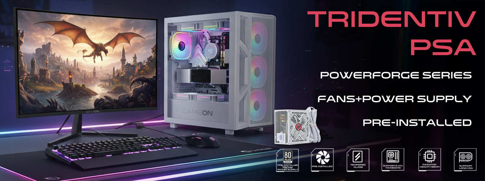 صُممت سلسلة TridentIV-A POWERFORGE خصيصًا لهواة بناء أجهزة الكمبيوتر المحترفين، فهي تجمع بين هيكل حديدي متين من نوع SPCC وتصميم أنيق، وتوفر توافقًا تامًا مع اللوحات الأم ATX وM-ATX وITX. بفضل وحدة تزويد الطاقة 750 واط 80+ Bronze المثبتة مسبقًا ومساحة المكونات المُحسّنة، يوفر هذا الهيكل أساسًا موثوقًا وعالي الأداء لأي جهاز ألعاب حديث.