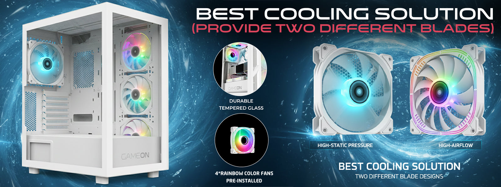 أضف لمسة جمالية إلى جهازك مع أربعة مراوح ARGB+PWM مثبتة مسبقًا بحجم 120 مم، تُنتج تأثيرات قوس قزح رائعة. استمتع بإضاءة نابضة بالحياة، وانتقالات سلسة، وتدفق هواء متوازن لعرضٍ آسر من خلال اللوحة الجانبية المصنوعة من الزجاج المقوى.