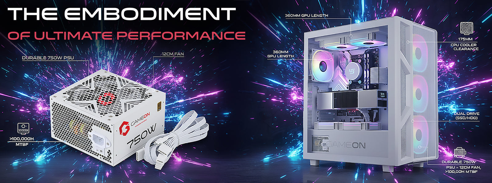 صُمم هذا الهيكل ليوفر إمكانيات فائقة، ويضمن دعمًا مثاليًا لأجهزة الكمبيوتر - بطول 360 مم لوحدة معالجة الرسومات، ومساحة 185 مم لمبرد وحدة المعالجة المركزية، وخيارات محركات أقراص مزدوجة، وتصميم داخلي أنيق لتدفق هواء مثالي. وبفضل وحدة تزويد الطاقة المتينة بقدرة 750 واط (مروحة 12 سم، وعمر افتراضي يزيد عن 100,000 ساعة)، والشبكات المقاومة للغبار، والبنية القوية، توفر سلسلة POWERFORGE استقرارًا لا تشوبه شائبة لأحمال العمل الشاقة وجلسات الألعاب الطويلة.