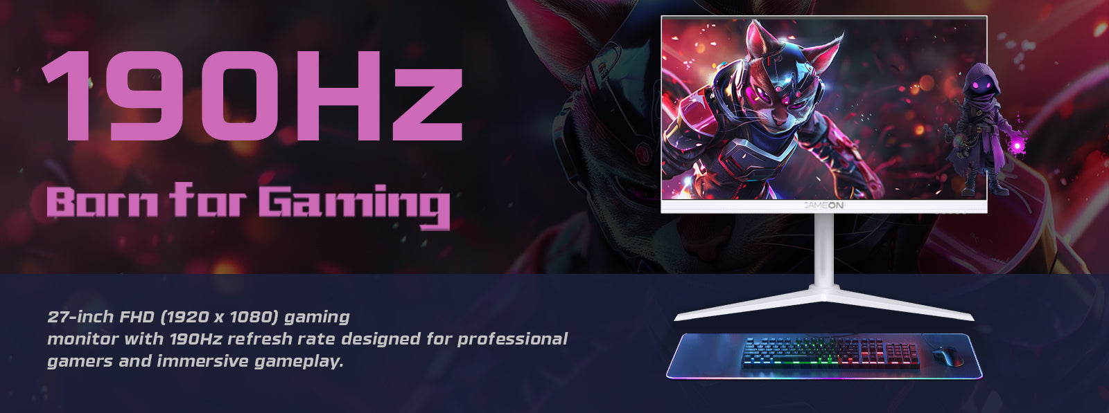 GAMEON GOA27FHD190IPS Artic Pro Series 27" FHD, 190Hz, MPRT 0.5ms, HDMI 2.1, Fast IPS Gaming Monitor (Supports PS5) - White
