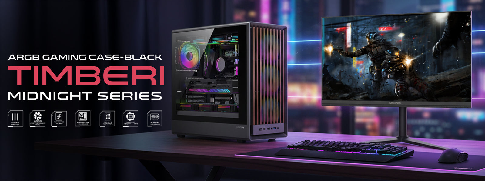 TIMBERI MIDNIGHT SERIES ARGB GAMING CASE – BLACK
