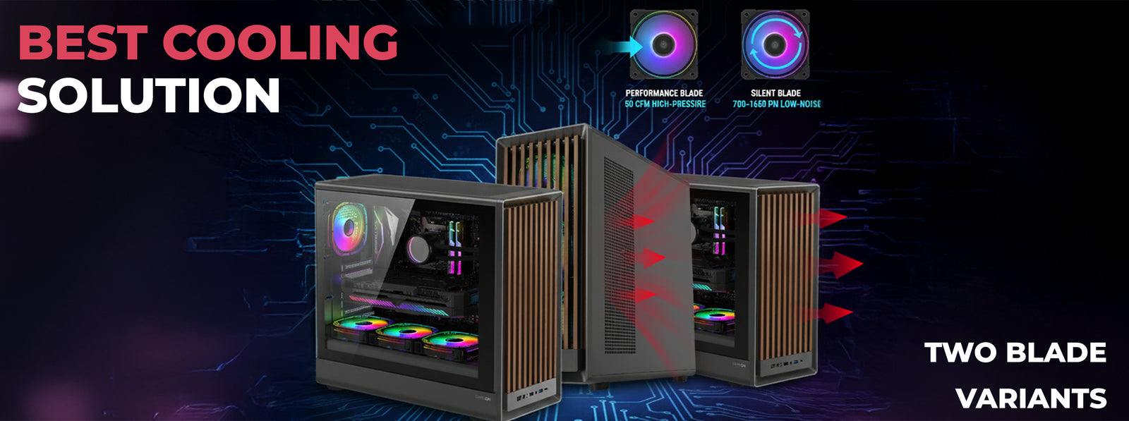 Performance Blade: High-pressure airflow up to 50 CFM for maximum cooling. Silent Blade: Low-noise design with stable 700–1600 RPM operation for quiet environments.