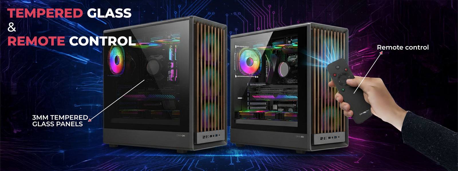 Premium 3mm tempered glass side panel highlights your hardware, while the included ARGB remote gives full control of fan speed, modes, and lighting effects.