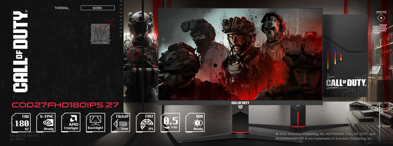 Experience unparalleled smoothness in your gaming with the Call of Duty 27-Inch Gaming Monitor's ultra-fast 180 Hz refresh rate. This feature drastically reduces motion blur and lag, ensuring you stay ahead in every fast-paced game.
