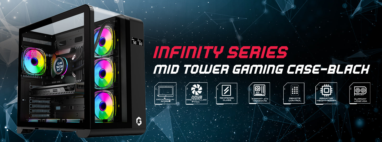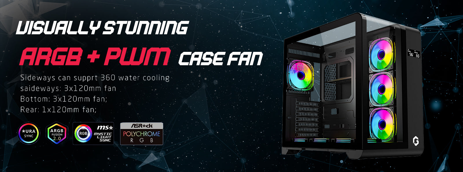 Elevate your setup with 7 pre-installed ARGB fans, delivering vibrant, customizable lighting effects for the ultimate gaming aesthetic!