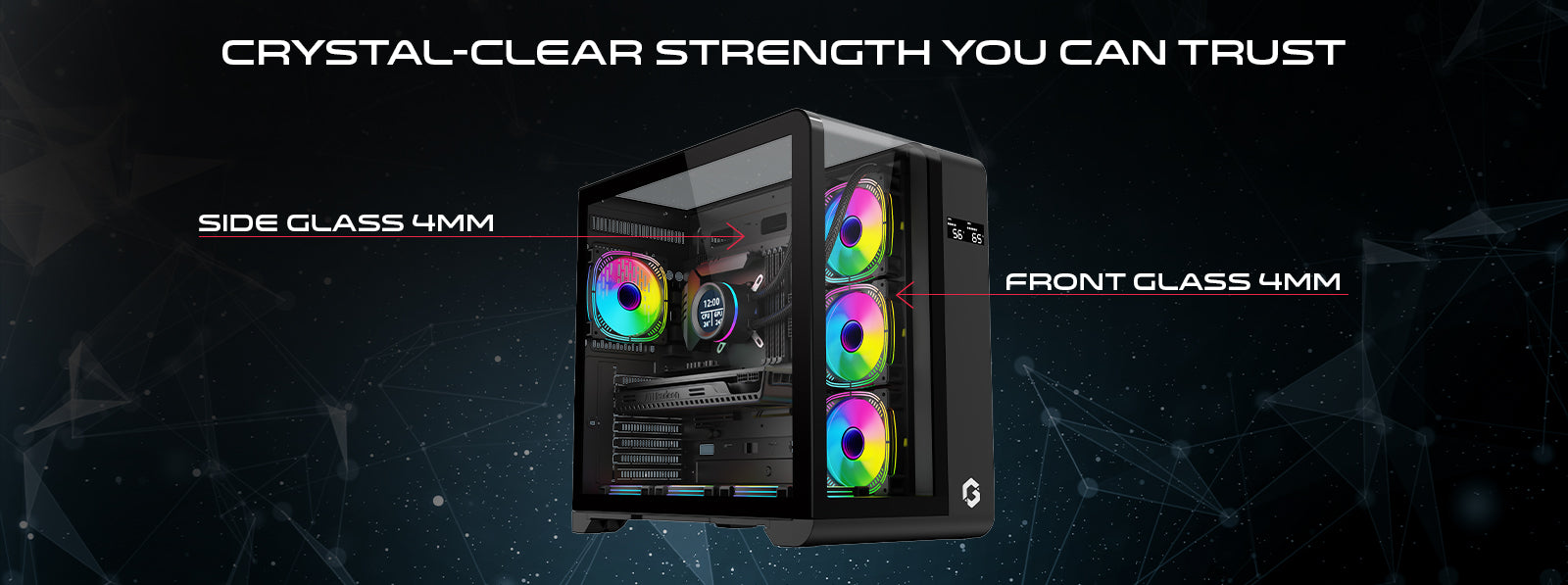 Crafted with durable SPCC materials, 3mm tempered glass, and equipped with a dust-proof net for protection and longevity.